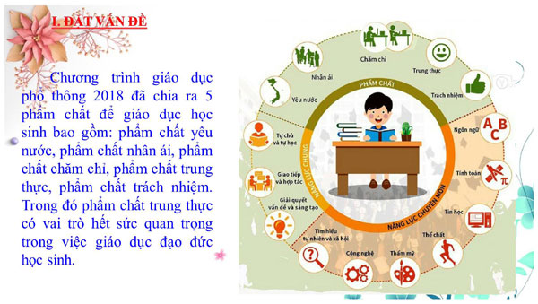 Chính vì thế mà chương trình giáo dục phổ thông 2018 đã chia ra 5 phẩm chất để giáo dục học sinh bao gồm: phẩm chất yêu nước, phẩm chất nhân ái, phẩm chất trung thực, phẩm chất trung thực, phẩm chất trách nhiệm. Trong đó phẩm chất trung thực có vai trò hết sức quan trọng việc giáo dục đạo đức học sinh. Yêu cầu cần đạt của phẩm chất này đối với học sinh tiểu học gồm những nội dung sau: